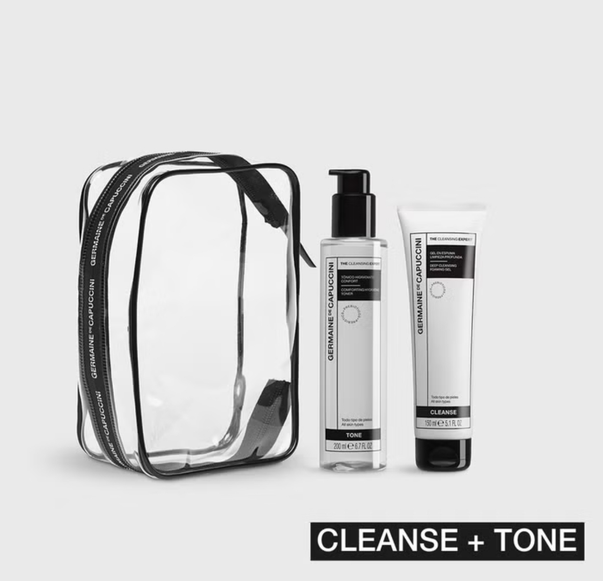 Pack CLEANSE + TONE que purifica e hidrata en 2 pasos. El Gel en Espuma Limpieza Profunda, completamente renovado, ofrece una limpieza intensa “gel-to-foam” que elimina impurezas y sebo respetando el microbioma; el Tónico HidratanteConfort reequilibra y aporta hidratación ligera para una piel fresca, suave y confortable. Ideal para piel mixta-grasa, incluso sensible.
